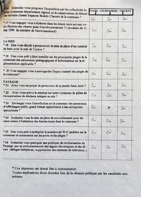 Trois listes sont en présence. Nous leurs adressons un questionnaire sur leurs engagements pour la protection des espaces naturels de la presqu’île.